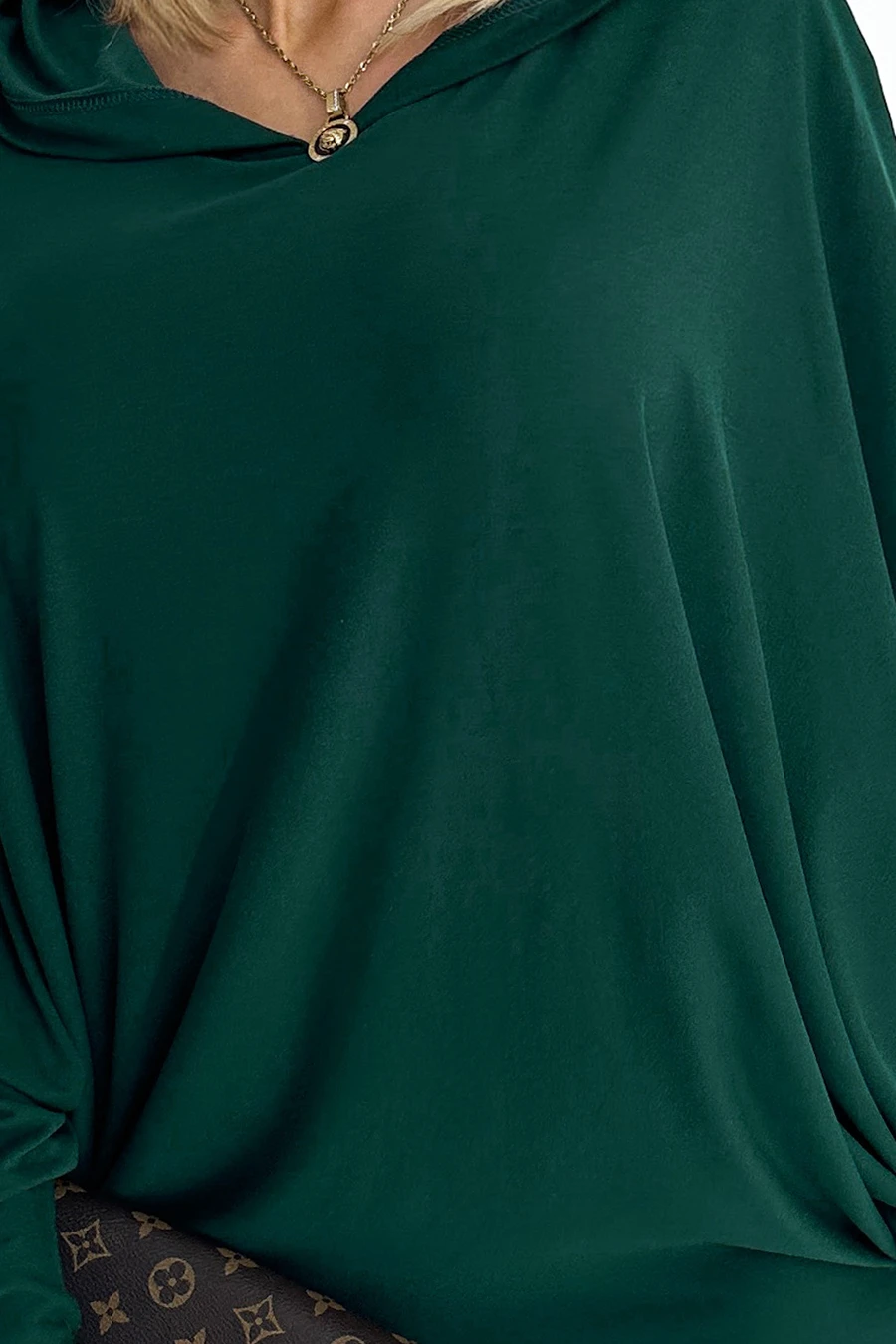 400-1 Sukienka nietoperz z kapturem - zieleń butelkowa