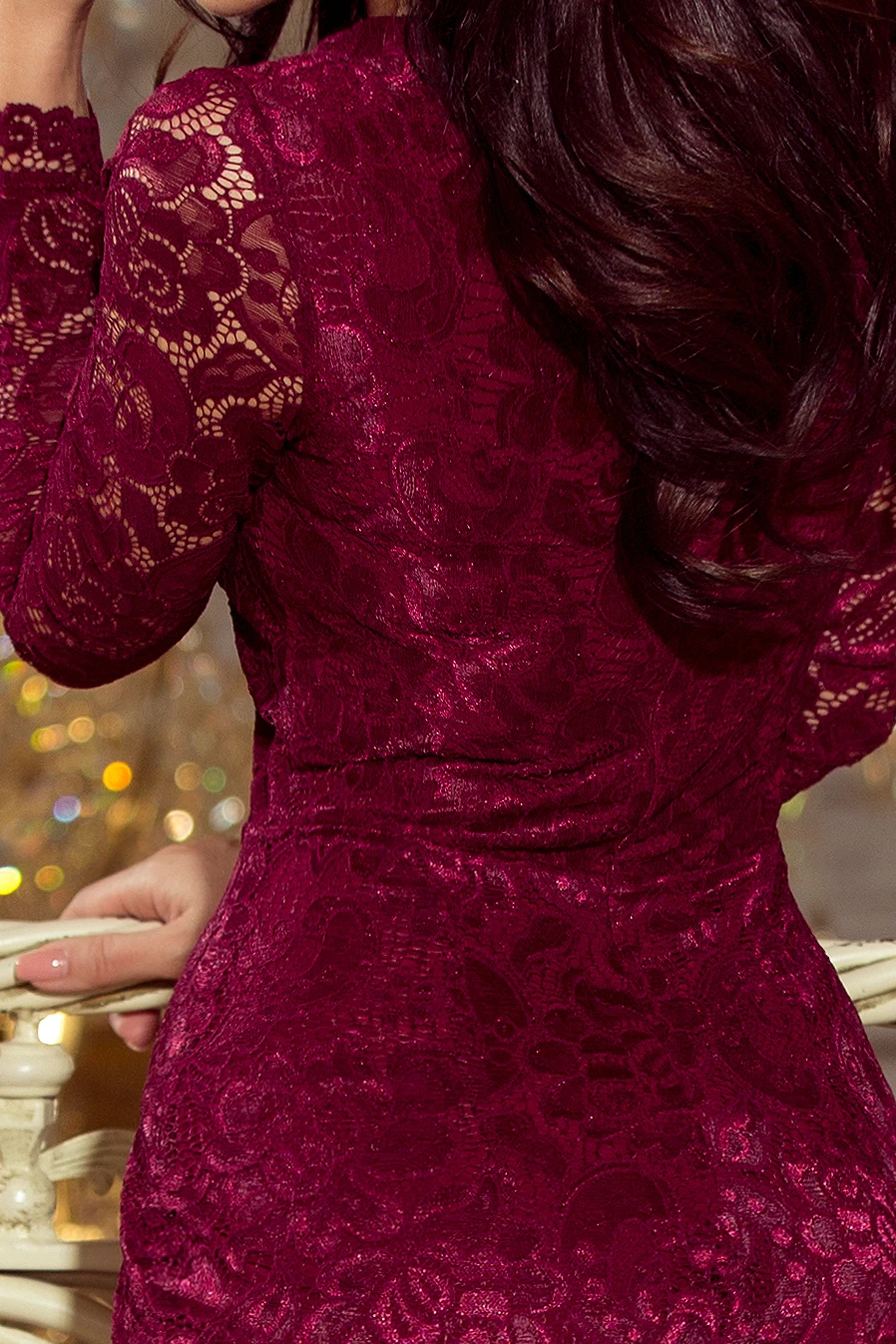 170-5 Sukienka koronkowa z długim rękawkiem i DEKOLTEM - BORDOWA