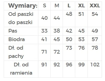 | Dł. od pachy (D) | 71 | 72 | 73 | 76 | 78 |